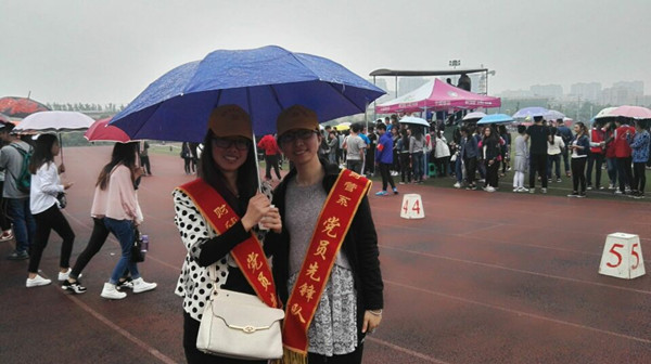 运动会上党员志愿服务队分工明确,做好后勤工作:送水、看管衣物,加油呐喊,运动场上哪里有比赛哪里就有财管系党员志愿服务队的身影。